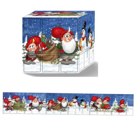 3D Pop-Up Kort - Tomte med snögubbe - Julkort