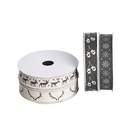 Julklappsband vit/svart 5M